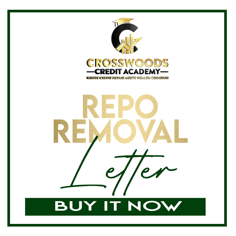DISCLAIMER: THIS LETTER IS PROPERTY OF THE CROSSWOODS CREDIT ACADEMY AND WE RESERVE ALL RIGHTS. THIS BOOK MAY NOT BE RESOLD, ALTERED, OR REBRANDED FOR PERSONAL OR COMPANY USE. WE ARE NOT RESPONSIBLE FOR ANY RESPONSES FROM CREDITORS/CREDIT BUREAUS. WE ARE NOT A LEGAL COMPANY AND DO NOT CLAIM TO BE LAWYERS IF YOU HAVE A LEGAL ISSUE, PLEASE FIND AN ATTORNEY IN YOUR STATE.